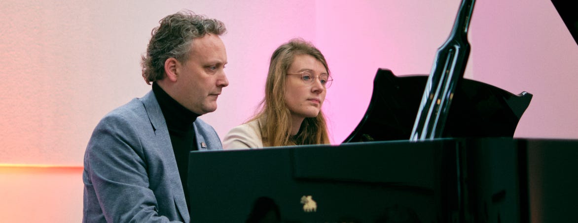 Slava en David zijn twee heel verschillende docenten, en ik ervaar zelf dat juist de combinatie van die twee voor mij heel goed heeft gewerkt. Voordat ik bij hen terechtkwam, studeerde ik aan de pabo en volgde daarnaast intensief pianolessen bij Andrew Wright, die mij een hele goede technische basis heeft gegeven. Slava heeft mij tijdens de vierjarige bachelor vooral veel geleerd over toonvorming en maakte mij altijd bewust van het feit dat je op het podium als artiest een verhaal moet vertellen. Je moet heel bewust zijn van wat je wilt overbrengen op je publiek. Bij David studeerde ik twee jaar in de master. Hij voelde voor mij altijd als een zeer rechtvaardige leermeester, waarbij geen detail over het hoofd werd gezien. Hij zette mij altijd enorm op scherp, iets waar ik zeker mijn hele leven profijt van ga hebben.